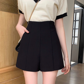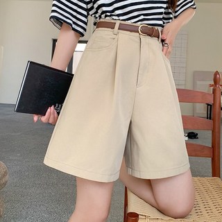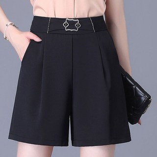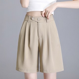 여름 하이웨이스트 정장 와이드 A라인 슬림핏 루즈핏 캐주얼 팬츠 여성용 베이직 캐주얼 데일리 반바지 비치룩 숏팬츠 빈티지 핫팬츠 찢청 무지