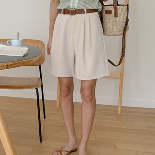 잇진 여성 벨트 세트 A라인 핀턱 4부 버뮤다 팬츠 반바지