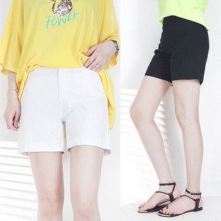 103st 4부 면 반바지 밴딩 스판 하이웨스트 핫팬츠 흰색 검정/S~3XL 여성 빅사이즈