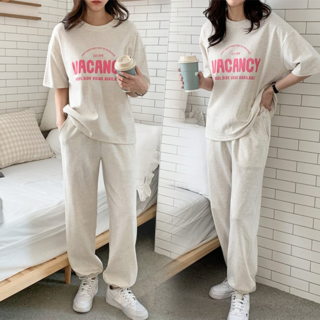 잇츠심플 파리스 레터링 라운드 반팔 조거 트레이닝복 세트
