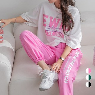 [오버나인] 여자 여성 특양면 옆턱 롱숏 와이드 트레이닝 팬츠