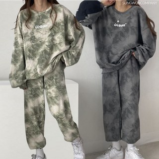 이너퀸 프리수 어반 나염 레터링 물감 투톤 빅사이즈 루즈 박시 긴팔 긴바지 조거 상하의 트레이닝 세트 긴팔어반나염세트