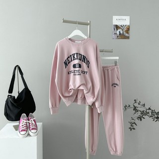 샵159 여성용 네이키 레터링 맨투맨 조거 트레이닝복 세트