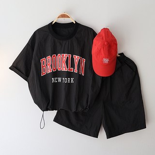 반팔 티셔츠 5부 반바지 스트링 트레이닝 세트