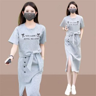 JIEVE 여성용 봄 여름 가을 반팔 트레이닝 세트 트임 스커트 투피스 WW030870