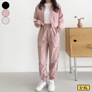 가비진 여성용 상하의세트 밴드 카고 조거 팬츠 바지+아노락 긴팔 집업 트레이닝 상하의SET 밑단 스트링 집업 허리 밴딩 카고 조거 바지 편안한 트레이닝