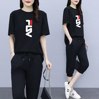 Hasvz여성 여름 신상품 트랜드 캐주얼 트레이닝복 세트 루즈핏 빅 사이즈 반팔티 9부 바지 투피스