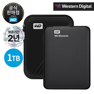 WD NEW Elements Portable Gen2 외장하드 1TB (파우치 포함), 리얼블랙