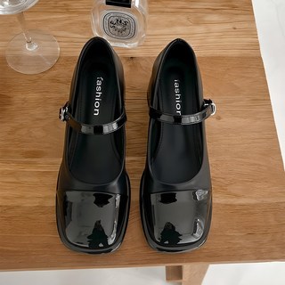슈뿐 콤비 스퀘어 메리제인 미들힐 통굽 펌프스(5cm)