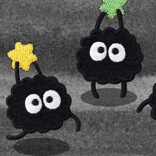 귀여운 별을든 검댕이 와펜 스티커 먼지 폰꾸 다이어리 꾸미기 부착 자수 패치, 1개, 별을든검댕이 3종set(옐로+그린+핑크)