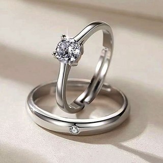 FANSYLI 결혼 반지 1캐럿 모이사나이트 커플 반지 1쌍 심플 925 순은 프러포즈 반지 사이즈 조절 가능 큐빅 반지 W2503M0505