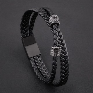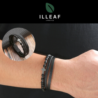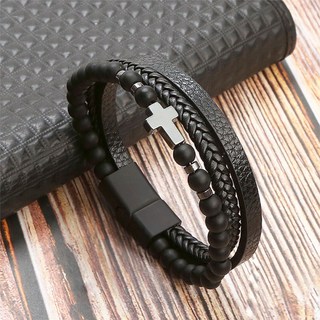 광명하다 십자가 원석 레이어드 가죽 팔찌