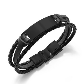 VITALO 남성 패션 가죽 레이어드 팔찌 (각인무료)