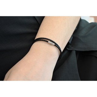 [시험성적서] 천연 가죽팔찌 남친선물 써지컬스틸 2줄