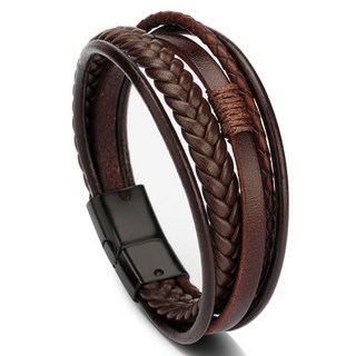 붓다베스트 남성용 레이어드 가죽팔찌