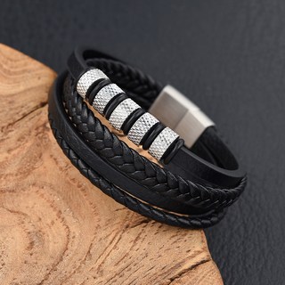 붓다베스트 남성용 메탈 가죽 레이어드 팔찌