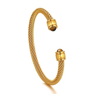 [ 1654485 ] VNOX 남성용 여성용 커프 팔찌 - 스테인리스 스틸 트위스트 케이블 와이어 뱅글 천연석 호랑이 눈 레이키 보호 행운의 번영 주얼리 선물 남성 신축성 조절, 골드