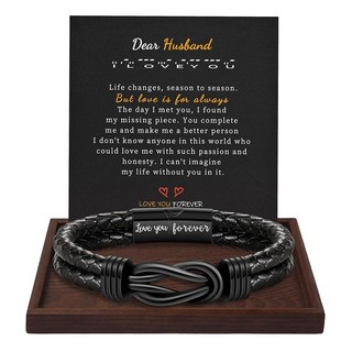 남성용 선물 가죽 팔찌 브라운 브레이디드 Forever I Love You 그를 위한 인피니티 커프 남자 친구 아들 손자 남편 아빠 아버지의 날 선물 8.5인치 메탈 보석