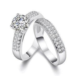 Uloveido 여성용 골드 플래티넘 도금 AAA CZ 약혼 밴드 더블 결혼 반지 세트 여성용 패션 신부 반지 세트 KR005 금속 크리스탈 큐빅 지르코니아, 6, 실버