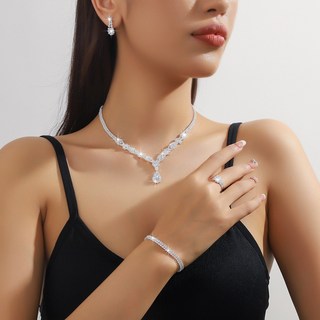 FANSYLI 목걸이 귀걸이 반지 팔찌 세트 반짝이는 큐빅 여자 주얼리 4종 세트 웨딩 파티 드레스 목걸이세트1224F02