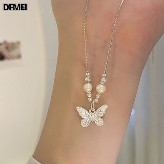 나비 진주 비즈 목걸이 스타일리쉬한 디자인 액세서리 통근에 잘 어울리는 가볍고 심플한 바디 체인