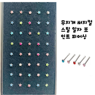 무지개 써지컬 스틸 코 일자 피어싱 한세트 40pc 2종