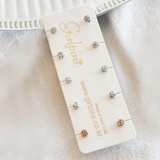 미다미 [5P세트] 3/4/5mm 클리어 크리스탈 큐빅 피어싱세트