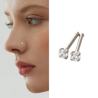 (한 쌍)P1012w 써지컬스틸 일자형 침형 큐빅 코찌 코 피어싱
