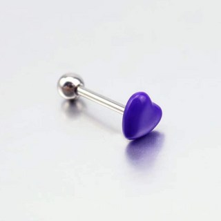 젤루나 여성용 써지컬 심플 볼륨 컬러 하트 바벨 볼 혀 피어싱 P-359