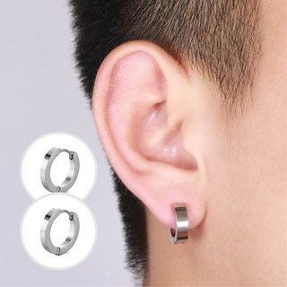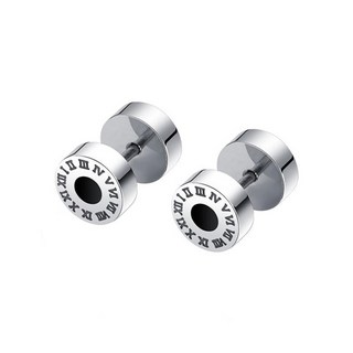 에르모사제이 맨즈 ME010 써지컬 스틸 로마 바벨 원형 실버 남자 피어싱 귀걸이