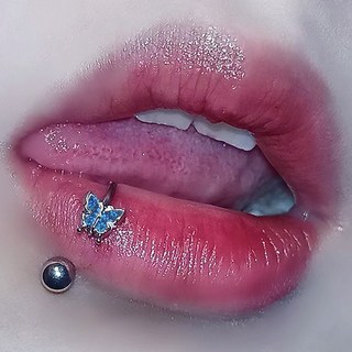 젤루나 여성용 써지컬 글리터 컬러 나비 입술 피어싱 8mm RP-55