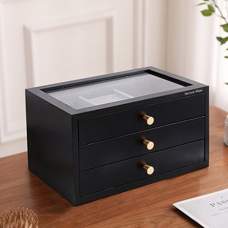 마켓플랜 프리미엄 원목 악세사리 보석 보관함 3단, 블랙, 1개