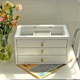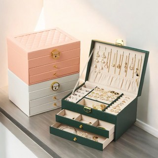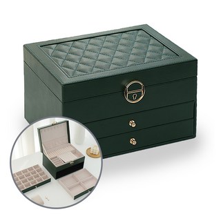 FONOW 보석함 3단 대용량 주얼리 박스 가죽 삼단 서랍 액세서리 수납함 골드 주얼리 목걸이 귀걸이 팔찌 수납함
