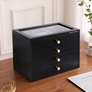 마켓플랜 프리미엄 원목 악세사리 보석 보관함 4단, 블랙, 1개