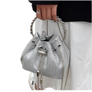 큐빅 버킷백 크리스탈 체인숄더백 미니 이브닝 핸드백 세컨백