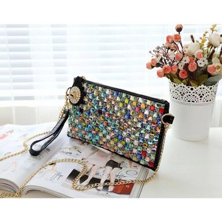럭셔리 청 골드 진 실버 큐빅 핸드백 콜라보 크리스탈 숄더백