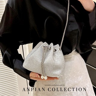 앙피앙 큐빅 숄더 비즈백 복조리 체인 파티 가방