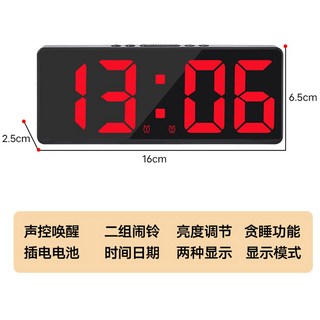 알람시계 탁상시계 스마트 디지털 탁상형 블랙 나뭇결 측정계 여자 침실용 인공태양알람시계, 주홍글씨 표시 송전 플러그