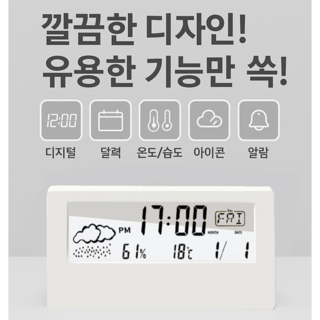 미니 탁상시계 무소음 디지털 시계 온습도 침대 책상 탁상용전자시계, 화이트