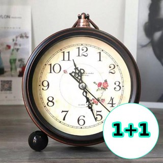 무지스 1+1 엔틱 인테리어 탁상 용 아날로그 알람 시계 플라워 건전지 탁상시계 책상 빈티지 레트로, 기본