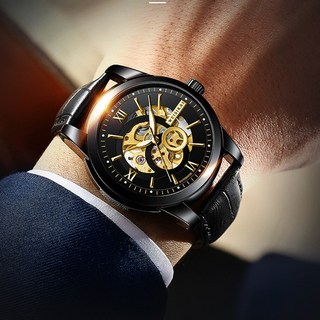 WEISIKAI 남자 시계 오토매틱 남성 가죽 손목 명품 6018