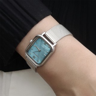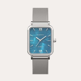 럼튼 하버 블루 자개시계 여자메쉬 워치 실버