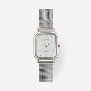 럼튼 하버 화이트 자개 여성 메쉬 손목시계 실버