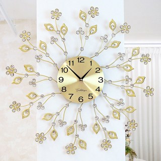 골드디자인 골드&큐빅 무소음 철제 벽시계, 골드