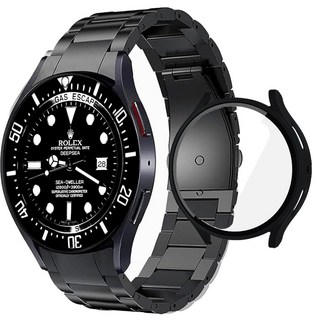 아이비온 갤럭시워치 원버튼 메탈 스트랩 40 44 mm + 풀커버 케이스 세트, 딥블랙