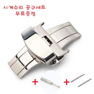 <공구세트무료증정>가죽시계전용 스텐레스 원터치 자동 디버클 실버 편안한 가죽시계 교체용 툴바(1p)+스프링바(3p) 무료증정이벤트