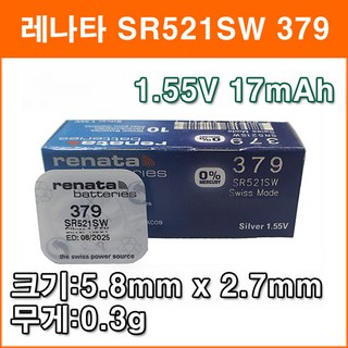 레나타 SR521SW 10개 시계배터리 379 379A LR63 SR63 280-59 GP379 AG0 618 건전지, 1개, 10개입