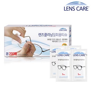 렌즈케어 렌즈클리닝 일회용 티슈 200매입, 1개