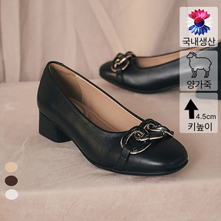 플로쥬 국내 프리미엄 양가죽 체인 장식 여성용 구두 4.5cm