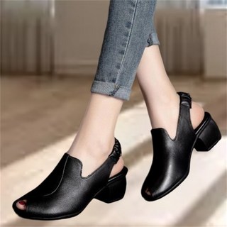 Hasvz여성용 토오픈 미들힐 복고 스타일 고급 가죽 경량 샌들 웨지힐구두5cm